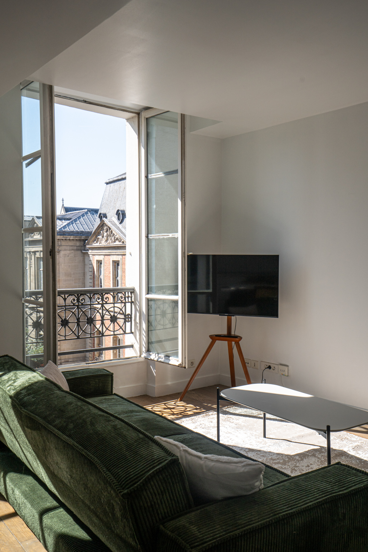Situé au coeur du Marais, dans la paisible rue du Vertbois, cet appartement de 50 m2, refait à neuf, séduit par sa luminosité, son design contemporain, son décor minimaliste et son esthétique léchée. Niché au 3ème étage avec une exposition plein sud, il offre une vue exceptionnelle sur le Musée des Arts et Métiers, face à un monument historique de la capitale, apportant un cadre de vie unique mêlant calme et charme parisien.