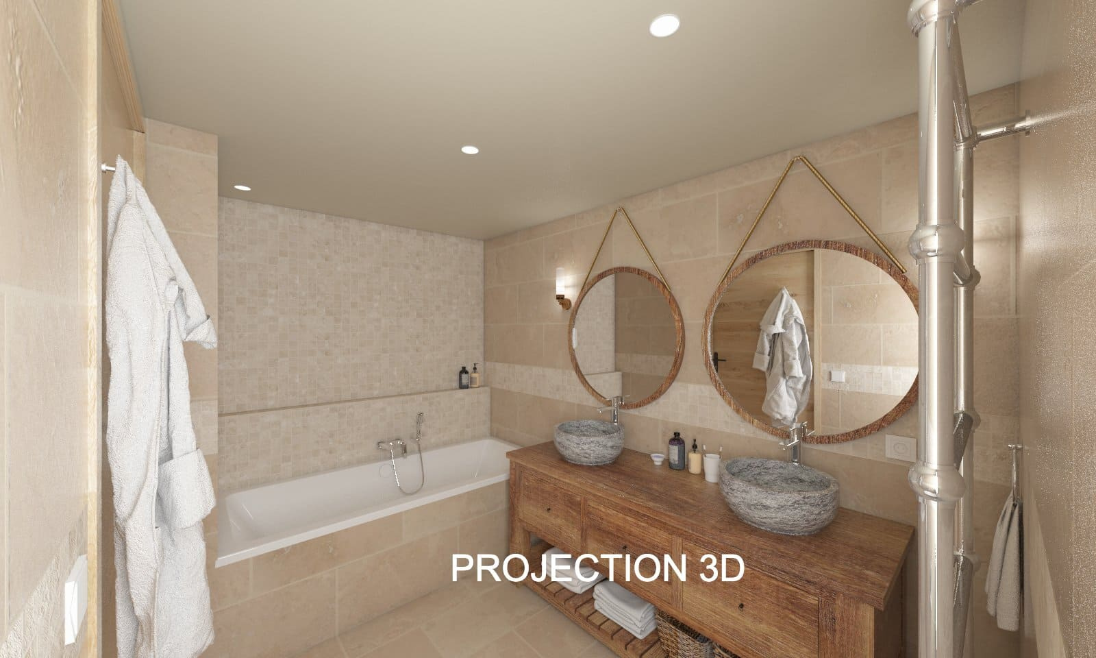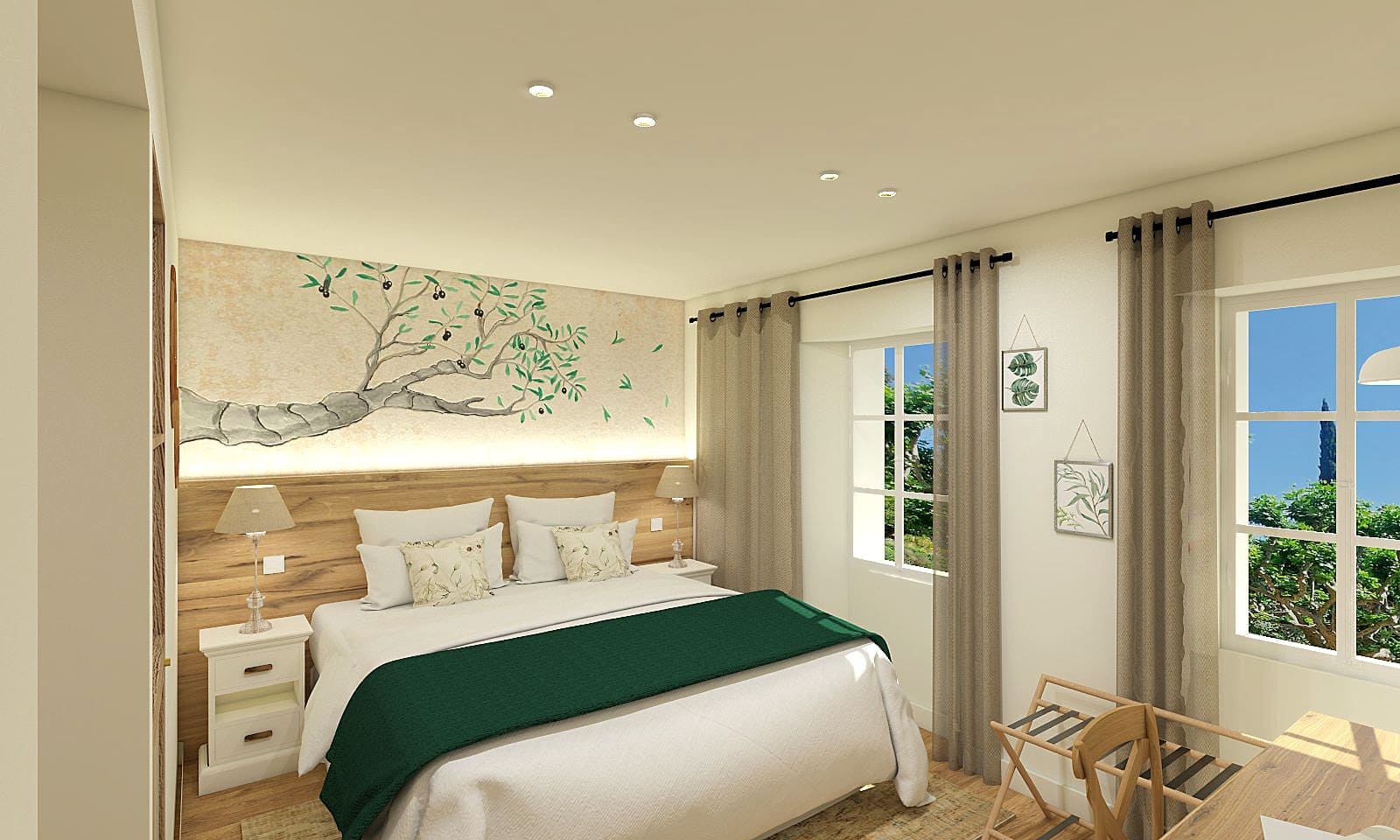 Dans l’aile Est, s’ajoute également un appartement, composé d’un séjour, d’une cuisine ouverte et d’une chambre master avec salle de bains et dressing, agrémenté là aussi d’une terrasse.